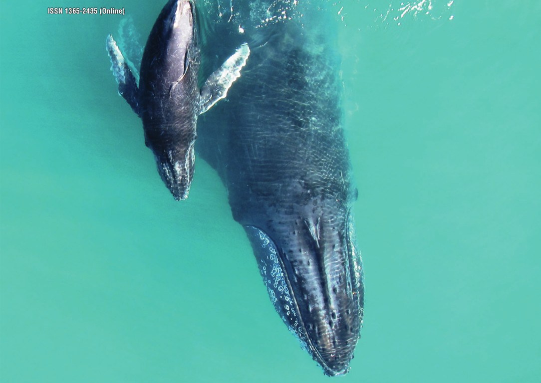 The cover photo was taken as part of the project: Assessing body condition in baleen whales. For this project, the authors used UAV’s to measure the body shape (length and width) of humpback whales in Exmouth Gulf to assess intra-seasonal changes in body condition during the breeding season. From this, the reproductive costs for adult and lactating females was inferred. The authors also investigated the relationship between maternal body condition and the size and condition of their dependent calf. For more information, please visit the project homepage or read Christiansen et al’s article Noninvasive unmanned aerial vehicle provides estimates of the energetic cost of reproduction in humpback whales.