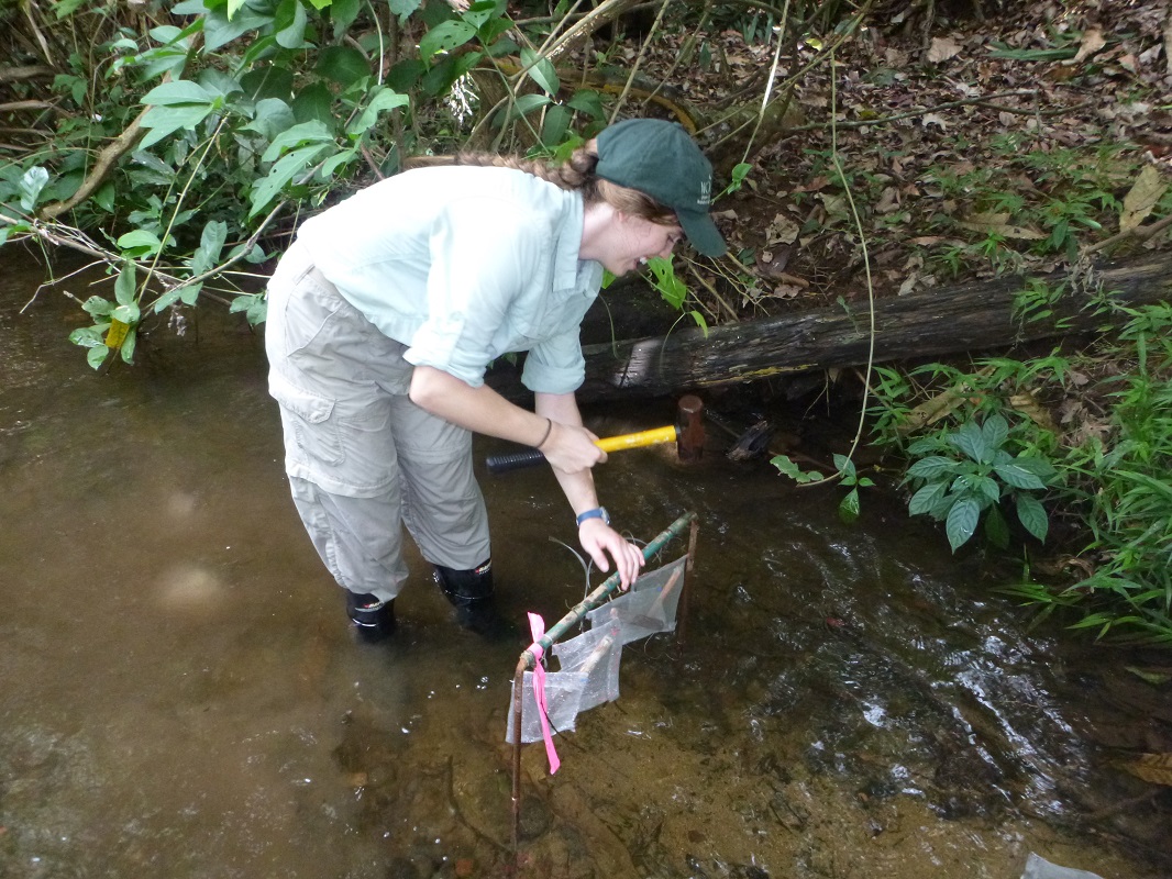 A huge tree fell on the experiment between the first and second collection. It’s not that uncommon in a tropical forest to have a tree fall on your experiment, but this one was huge! The tree fell across one of the stream plots and onto the nearby land plot, so I ended up losing both aquatic and terrestrial wood samples. Fortunately, I still had plenty of samples to publish. I also still use the picture I took of the fallen tree in talks as an example of a large pile of dead wood.