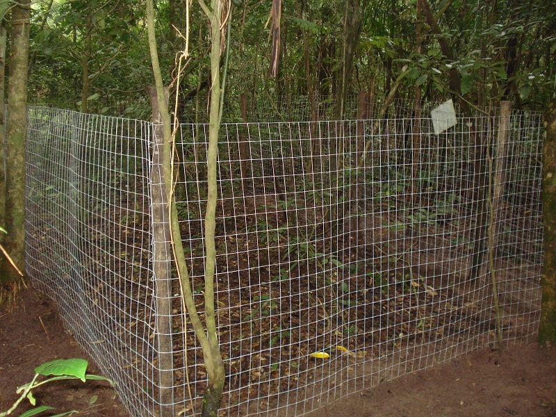 Once the sites and experimental design was decided, then came the logistical challenge of building the plots. Sergio Nazareth, our fantastic super-field technician, managed to hire hardcore local workers willingly to carry by hand up all the tons of wood, wire mesh and all other necessary material uphill to the location of each plot. I can reassure that a lot of cachaça was involved. I recall one of the workers badly damaged his back, and was hospitalized and went through surgery to recover. The rest just slept for weeks after the work. But I am also quite sure Sergio didn’t: most likely he woke up next day, cooked breakfast for everybody, and drove many hundred kms ready for his new assignment. But he had left his legacy: by 2010, the largest exclusion experiment in the whole of the Neotropics was ready to walk on its own.