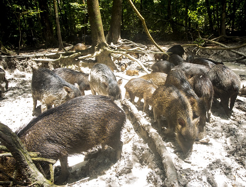 Another critical burden is that the amount of trophic and non-trophic interactions involving large vertebrates that can be directly observed on tropical forests is also very limited. I can’t help feeling jealous when I read studies reporting behavioural observations of large wildlife in savannahs. On the Atlantic Forests, this is simply impossible. You can make hundreds of kilometres on foot without spotting a tapir or a band of white-lipped-peccaries. They might be there, but you can’t see them, partly because they’re elusive, partly because they are not within spotting distance, and partly because densities are thought to be much lower (I say thought because actually methods for estimating densities of most vertebrates in tropical forests are still utterly inaccurate). You can’t follow them and observe them from the distance with your “binos” sat on a Land-Rover. This is why we have been working with camera traps lately so as to explore alternative hypotheses and study coexistence between large vertebrates (Akkawi, Villar, Mendes, & Galetti, 2020), yet there is a very limited amount of information that you can extract from those, nothing compared to e.g. direct observations on grassland or more canopy-open systems. We have also used telemetry and radio-collars attached to white-lipped peccaries to track their movements and use of the plots, but again this technology is designed for more open ecosystem types, where collars just don’t break or stop working after a few weeks. That is, assuming that the animals are not illegally hunted before, which happens quite frequently on some sites.