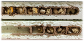 Nutrition is linked to almost every aspect of an animal’s behaviour and physiology, and we really wanted to explore this in solitary bees. Bee declines are no secret, and we know that lack of nutritional resources is one of the major factors; however, we know so little about their nutritional needs, especially in solitary species. We also know remarkably little about the nutritional relationship between the parents and offspring of any animal, and bees are a perfect example of this. In fact, our knowledge of larval bee nutrition is astonishingly sparse given their ecological significance. Therefore, we decided that this would be our focus—to investigate whether larval bees had any control over the nutrition they consumed. If they could not, then they relied purely on parents—parents that a) may not be able to detect the nutritional quality of the food they provided, and, b) may not actually share the same interests as the larva.
