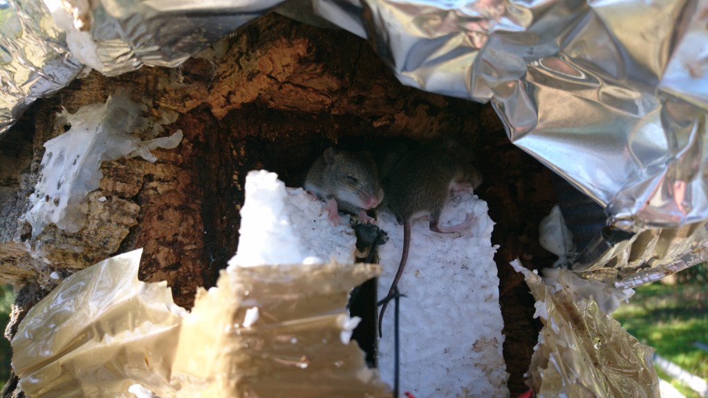 However, to get to this point, we had to overcome some challenges. To establish this experiment, we had to consider quite a number of different things. Apart from the manpower needed, the field site was, and is, still being used as a hunting ground, meaning that a lot of wild boars and deer roam the area. Wild boars are especially interested in everything, including soil moisture sensors which are buried in the ground! Thus, we had to build fences to keep the animals out of our plots—not an easy endeavour with bedrock close to the surface (at a depth of 40cm). While we were able to keep the big animals out, some other, smaller “friends” of ours made our lives—especially mine—unnecessarily hard. The protection shielding our sap flow sensors from the sun, rain, etc., was the perfect spot for mice to start a family! And, in the process of family-making, they loved to chew on the cables, representing the main contributor to gaps in our tree water flux data.