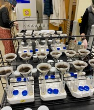 While it can be challenging to study underground phenomena and ecosystems can be complex, tools like microcosm experiments allow us to scale down and simplify systems to test specific mechanisms while controlling for environmental variability. Our team designed a microcosm experiment to uncover how legacies of past conditions influence soil microbial communities during freeze-thaw cycles. We trekked through the mountains of Vermont to collect soil samples, along with the microbial communities they harbor, and then used these samples to create a controlled microcosm experiment simulating freeze-thaw cycles. Our samples came from two forests that are similar in vegetation and soil type, but that have experienced different winter conditions. The colder site is at high elevation near the peak of Camel’s Hump, one of the highest mountains in Vermont, while the warmer site is nearby at low elevation. Our experimental setup allowed us to attribute any differences in freeze-thaw responses to the microbes, rather than the soil, and we investigated potential longer-term effects during a recovery period, making our study stand out from past research. In addition, we focused on a temperate ecosystem, whereas prior studies have mostly been done in polar and high alpine regions.