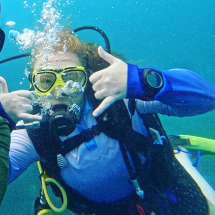 Captured in this selfie is me, moments after a rewarding dive experience (credit: Monica McCard)