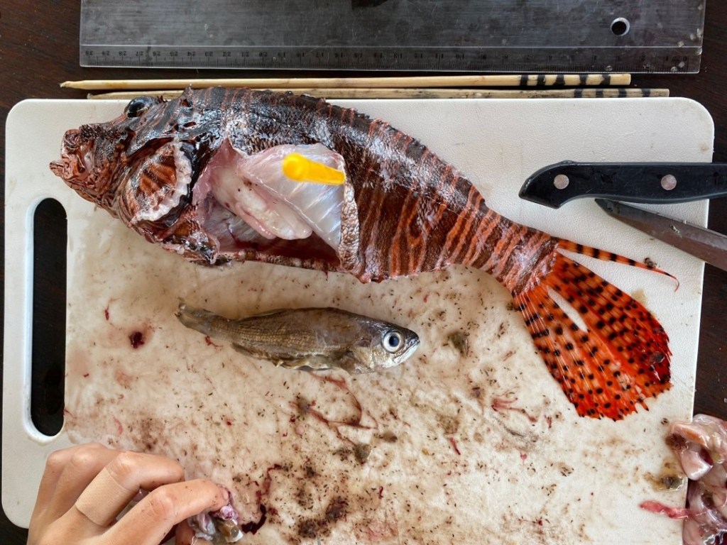 I am from Northern Ireland but I currently live in Liverpool, UK. The study site I was recently on was in Tela, Honduras. Tela Bay is home to Banco Capiro—visitors to the site have the opportunity to work on a wide-range of projects that help to influence long-term conservation initiatives within the Mesoamerican Barrier Reef. Operation Wallacea (Opwall) offer expeditions to clusters of scientists and field biologists, running a series of wildlife research projects at overseas sites and publishing their results. The surveys are designed when the results across the different surveys are taken together to answer conservation questions and identify any ongoing long-term biodiversity changes. The expeditions are funded by, and rely on, teams of student volunteers who join expeditions for the opportunity to work on real-world research programmes alongside academic researchers. I came to Honduras to set up my own research project and, while I was there, I had the opportunity to intimately observe lionfish and get involved in the dissection and stomach content analysis of lionfish. The project I wanted to set up was an investigation into microplastic accumulation on two different ecosystems on both Tela and Utila. I had the opportunity to go to the site and see first-hand how lionfish eat and hunt and how I could set up and manage a research project.