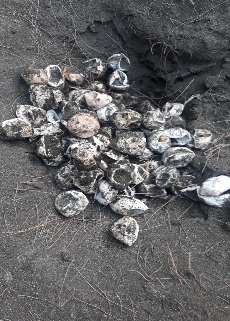 The most surprising aspect of my study site has been finding turtle tracks with eggs nowhere to be found. This implies that the eggs were collected by humans, either for consumption or trade. The inhabitants of the study location are mainly fishermen and locals. Sea turtles are fully protected under Indonesian law; however, for such a law to be functional, there is a need for community-based conservation agenda where everyone can get involved in decision-making processes. For instance, during one of the sampling periods, an olive ridley nested eggs was first found by some fishermen. They were honest enough to tell me that 86 eggs were laid by the turtle, but they only returned 65 at the Conservation Area at Sodong Beach.