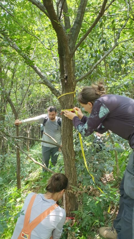 Despite the differences among our subprojects, in this field season, we are all focusing on studying the interactions between trees and shrubs and their effects on ecosystem functioning. To achieve this, we are sampling shrubs and the trees surrounding them in different plots varying in tree diversity and composition. In this setting, among other things, we are measuring the size of individual trees and shrubs, collecting leaves to measure various leaf traits and assess leaf herbivory and fungal infestation, and taking soil cores to study the activity of soil microbial communities. We hope that this will help us to answer the different questions of our specific subprojects.