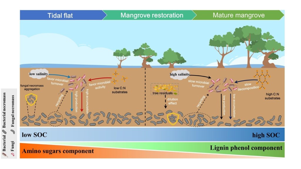 The term blue carbon describes the carbon captured and stored in the soil of coastal wetlands. This process occurs through photosynthesis performed by various types of vegetation, including mangroves, salt marshes, and seagrass beds. Among these, mangroves are increasingly in the spotlight due to their impressive carbon sequestration capabilities and their potential in this area. Recent research has pointed to microbes and plant matter as key contributors to the soil’s organic carbon content. However, the extent of their contributions within mangrove ecosystems is still a topic of ongoing investigation. Gaining a deeper understanding of these components and how they contribute to organic carbon is vital. It sheds light on the vulnerability of mangrove carbon reserves to environmental shifts. This insight is especially critical for environmental scientists, ecologists, and policymakers who are actively engaged in the management and preservation of coastal ecosystems.