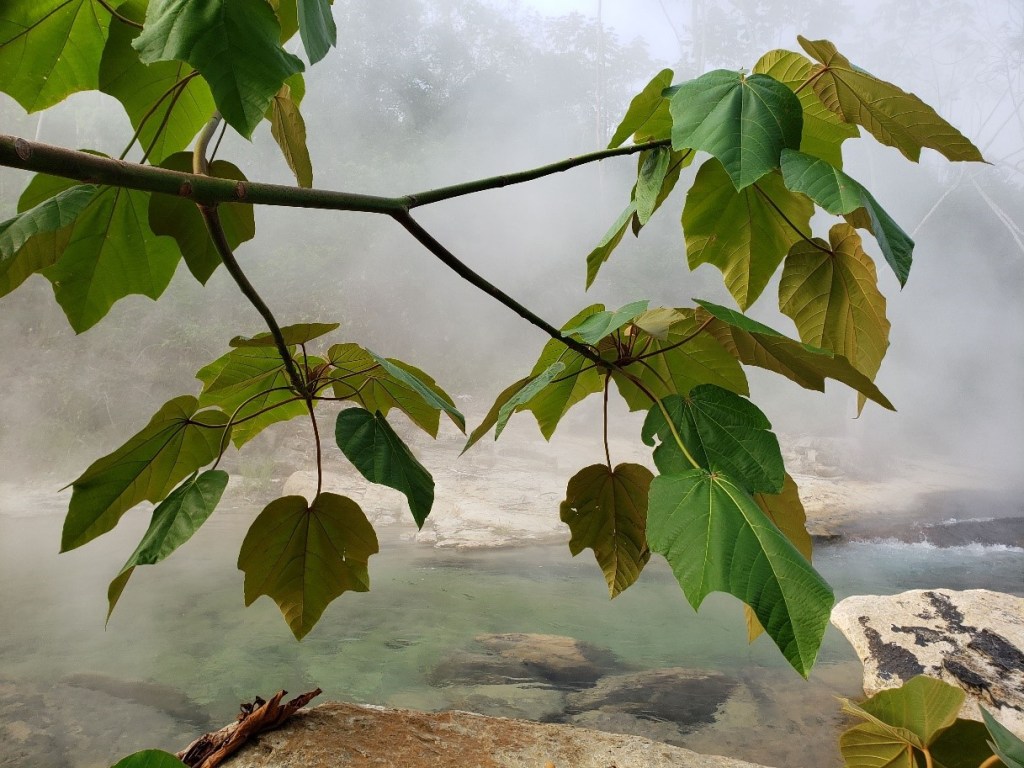 With this design, we studied how the physiology of the plants growing along the river acclimates to different growing temperatures. Given the fast rate of anthropogenic climate change, long-lived taxa with long generation times such as most woody species will have to rely primarily on their abilities to acclimate (i.e., phenotypic plasticity) rather than adapt to higher temperatures, which is what the Boiling River allows us to study.