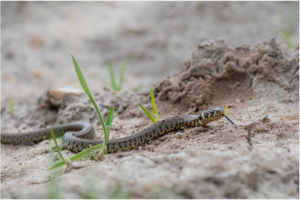 Figure 1: Grass snake Natrix natrix doing a tongue flick. (Credit: Arnaud Badiane)