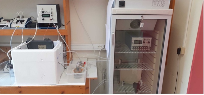 Figure 3: Experimental set up to measure metabolic rate and evaporative water loss, with video recording of the lizard behaviour at CEBC Chizé. (Credit: Chloé Chaubaud).