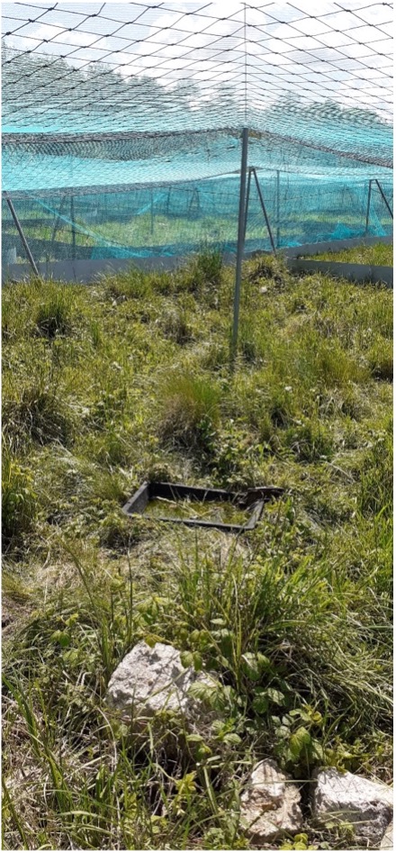 Figure 4: Outside enclosure containing population of Zootoca vivipara at CEREEP Ecotron. (Credit: Chloé Chaubaud).