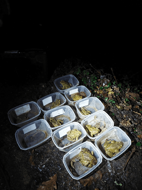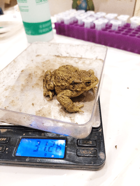 * Amphibians are protected species in France – several permits were obtained to do this study and all toads were quickly released on site after cautious biological sampling, all in perfect condition.
