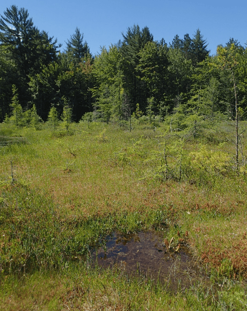 Peat bogs are wonderful habitats full of interesting species, but they are hard places to work. They are very fragile mats of peat moss and roots floating on the surface of a lake, and they can move under you with every step. There’s no sitting down, no kneeling, no setting your notebook down next to you. Everything is either in your pocket, tied to you, or in a plastic bin that can float, and every step is carefully chosen to minimize the impact on the bog. We called the fieldwork for this project ‘bog twister’, because once you plant your feet in one spot, you move them as little as possible while you place or collect models to avoid trampling vegetation or creating a hole in the peat mat.